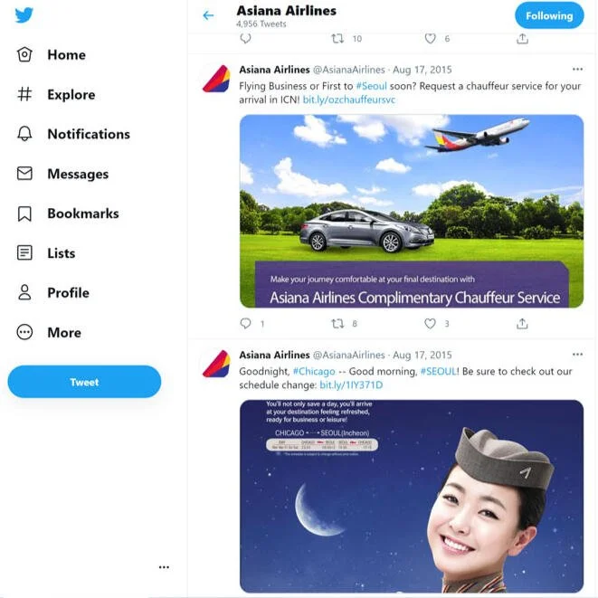 Asiana Airlines (US) Twitter | Social Media Manager